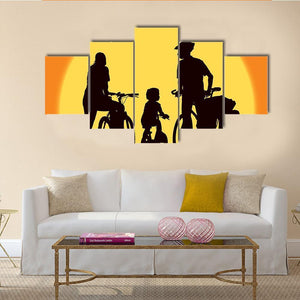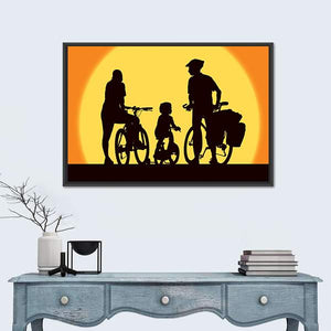 Parents and Child Cycling at Sunset Canvas Wall Art