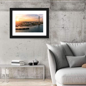 Experience the serene beauty of a sunset over Bangkok's Chao Phraya River. This canvas art captures the calm hues of orange and blue, featuring elegant barges and iconic bridges amidst a cityscape. Ideal for adding a touch of tranquility to your living space.