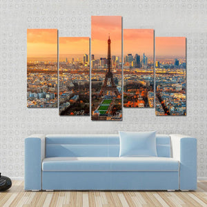 Experience the beauty of Paris at twilight with this stunning canvas wall art. Featuring the iconic Eiffel Tower and a vibrant skyline, the warm colors evoke a sense of expansiveness and tranquility, perfect for any room in your home.