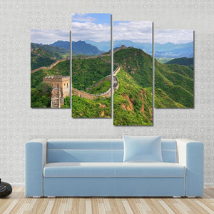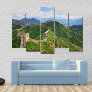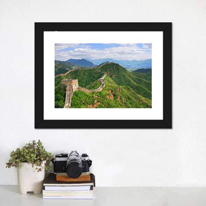 Experience the majestic beauty of the Great Wall of China with this stunning canvas wall art. Captured from an aerial perspective, it showcases winding paths through lush green hills under a serene blue sky. This artwork adds depth and tranquility to any space.