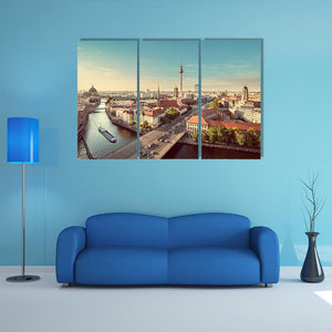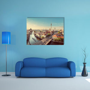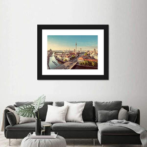 This cityscape captures the iconic Fernsehturm tower alongside the serene Spree River. With vibrant blues and oranges, it evokes a sunny, historic atmosphere perfect for brightening your space.