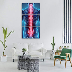 This canvas features a striking illustration of the human spine, highlighted with a glowing red detail against a blue skeletal outline. Its scientific and educational vibe makes it a unique addition to any space.