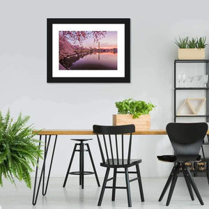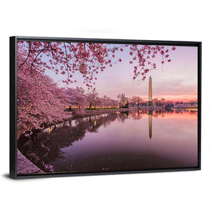 This beautiful canvas art features cherry blossoms in peak bloom surrounding the Washington Monument and the tidal basin. Its serene and romantic atmosphere, enhanced by reflections in water, is perfect for bringing a peaceful feel to any space.
