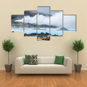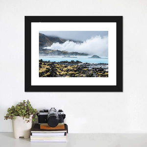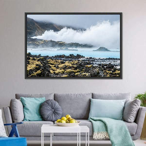 Capture the serene beauty of Iceland's geothermal landscape with this stunning canvas art. Featuring misty mountains, volcanic rock, and vibrant blue water, this piece brings an otherworldly touch to your decor.