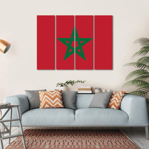 This canvas wall art features the flag of Morocco, capturing its bold reds and greens in a minimalist design. Its symmetrical composition, highlighted by a five-pointed star, evokes a patriotic spirit that complements any modern décor.