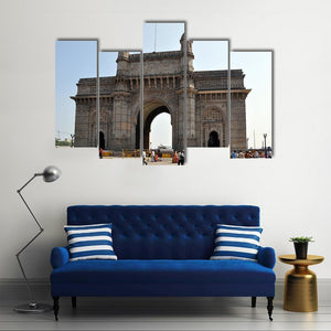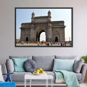 This canvas art captures the historic Gateway of India, showcasing its grand archway with people bustling in front. The use of grey, blue, and white evokes a busy yet serene atmosphere, making it a striking addition to your wall decor.
