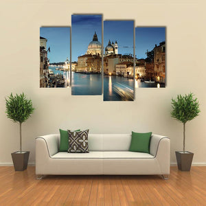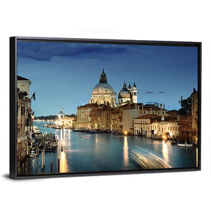 This canvas wall art captures the serene beauty of Venice, showcasing its iconic canal and stunning churches. The picturesque scene, infused with deep blues and warm golds, invites a sense of calm into any space.