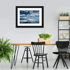 This canvas art features striking icebergs against a serene sky, capturing the dramatic mood of Iceland's Jokulsarlon Glacial Lake. The calming palette of blue, white, and gray adds a peaceful touch to any space.