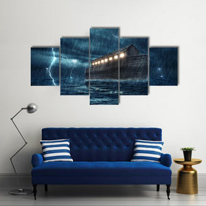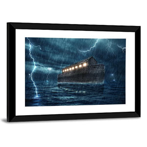 This dramatic canvas art captures Noah's Ark amidst a storm, featuring dynamic perspectives of crashing waves and heavy rain. With glowing windows illuminating the ark, it creates an intense and awe-inspiring atmosphere.
