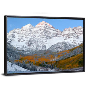Snowy Maroon Bells Mountains at Daytime Canvas Wall Art