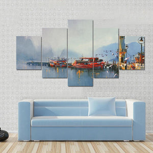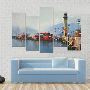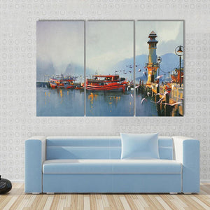This serene canvas captures a calming harbor scene with boats and a tall lighthouse. The impressionistic style features vibrant colors, evoking a coastal feel perfect for any living space.