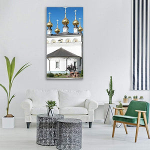 White Orthodox Church with Six Golden Domes Vertical Canvas Wall Art