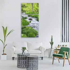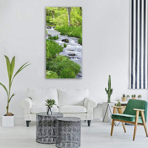 Shallow Stream in Lush Forest Vertical Canvas Wall Art
