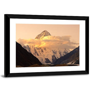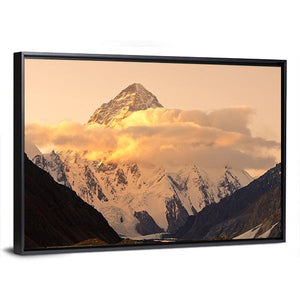This stunning canvas features a majestic snowy mountain peak illuminated by the sun, surrounded by dramatic clouds. Its serene colors of white, orange, and gray create an awe-inspiring atmosphere, perfect for enhancing any room décor.