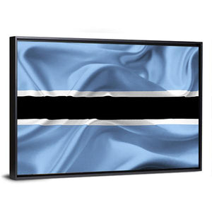 The Botswana Waving Flag Canvas Wall Art captures the essence of Botswana through a striking abstract design. With a modern palette of blue, black, and white, it brings a clean and graphic touch to your space.