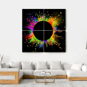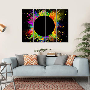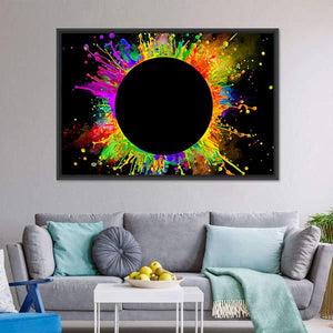 The Color Splashes Canvas Wall Art captures a vibrant color explosion with its black circle centerpiece and dynamic splatter effect. This energetic piece brings a lively atmosphere to any space, making it a perfect addition for modern decor enthusiasts.