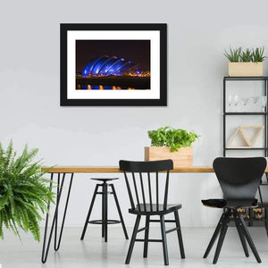 This canvas art captures the iconic Glasgow Armadillo building at night, illuminated against the dark sky. Featuring a modern design with striking blue and black tones, it reflects beautifully on the nearby water. Perfect for adding a touch of urban sophistication to your space.