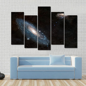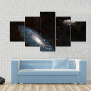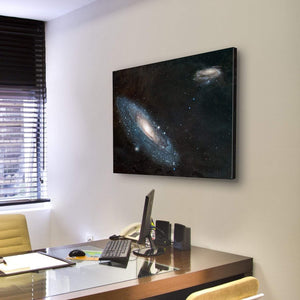 This canvas wall art captures the breathtaking beauty of galaxies with a photorealistic depiction of the Andromeda and Milky Way. The vast depth and cosmic palette create an awe-inspiring atmosphere, perfect for stargazing enthusiasts.