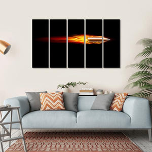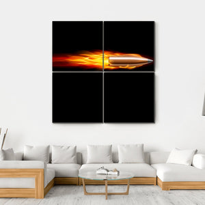 This striking artwork features a bullet in motion, accompanied by a trail of vibrant fire. With its intense colors of orange, yellow, and red against a deep black background, it exudes a powerful, dynamic energy that makes a bold statement in any space.