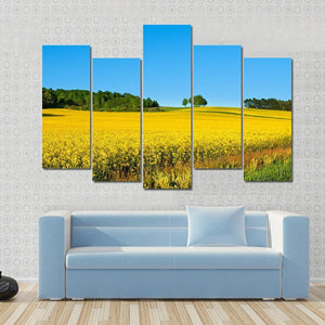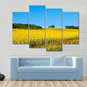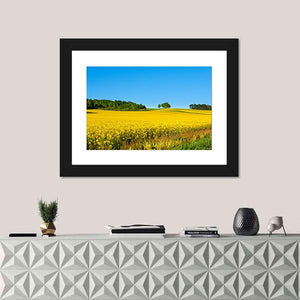 This canvas art features a vibrant field of yellow flowers under a serene blue sky, bordered by lush trees. Its peaceful composition makes it a lovely addition to nature-inspired décor.