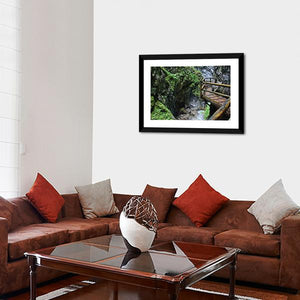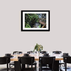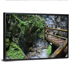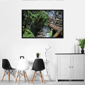 Wet Boardwalk in Austrian Alpine Gorge Vertical Canvas Wall Art