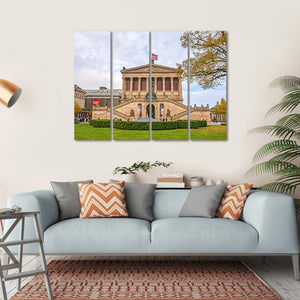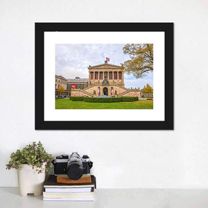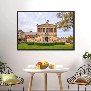 Experience the grandeur of the Alte Nationalgalerie, a stunning neoclassical museum set against a backdrop of vibrant trees and a calm sky. This landscape canvas art captures the historic essence of Germany, making it a serene addition to your wall decor.