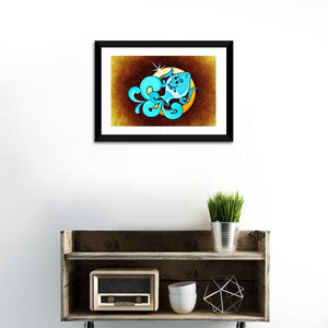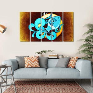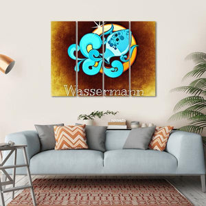 This canvas print features the Aquarius symbol, beautifully stylized and pouring water, embodying a celestial and mystical vibe. The rich palette of blue, orange, gold, and brown adds warmth and depth, making it a striking addition to your wall décor.