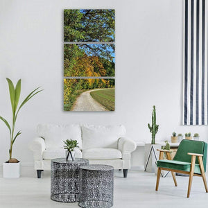 Country Road Through Autumn Forest Vertical Canvas Wall Art