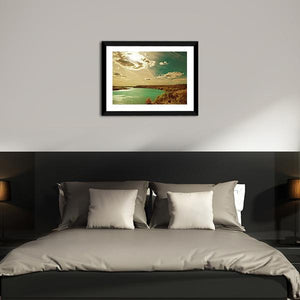 This landscape piece captures the serene essence of a riverside in autumn, showcasing a tranquil lake surrounded by hills under a vast sky. The soft rippling water surface and streaky clouds evoke a calm, peaceful atmosphere, making it ideal for adding a touch of nature to your decor.