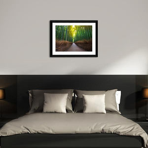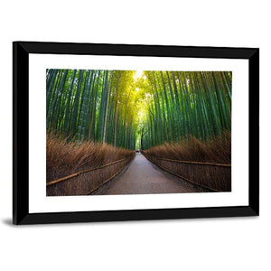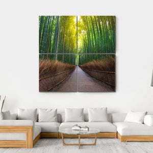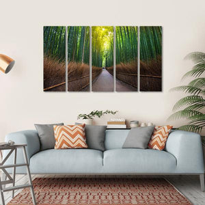 Immerse yourself in the tranquility of a bamboo forest with this canvas wall art. Featuring tall bamboo stalks and a serene walking path, it evokes a peaceful, natural atmosphere perfect for any space.