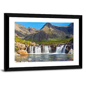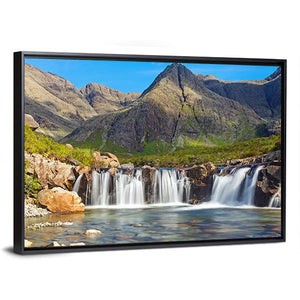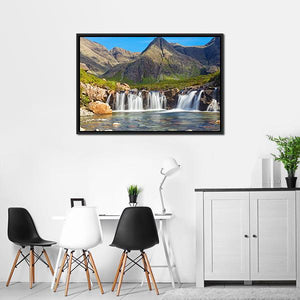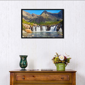Experience the serene beauty of Fairy Pools in Scotland with this captivating canvas wall art. The artwork showcases a majestic waterfall surrounded by lush mountains and a tranquil river, inviting a peaceful ambiance into your space.