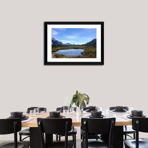 This landscape artwork captures the serene beauty of Mt Fitz Roy, showcasing a mountain lake surrounded by snow-capped peaks. The photorealistic style invites you to immerse yourself in the expansive natural scene.