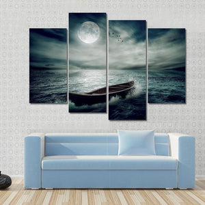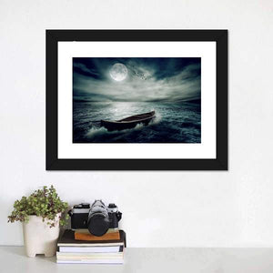 Boat Drifting in Stormy Ocean Canvas Wall Art