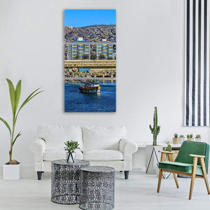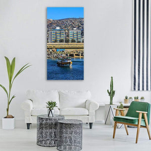 Tour Boat by Colorful Hillside Vertical Canvas Wall Art