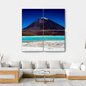 This canvas art captures the serene beauty of Bolivia's vibrant turquoise lake, framed by majestic mountains and striking salt flats. Its photorealistic style brings a remote landscape to life, making it a captivating focal point for any space.