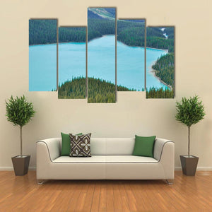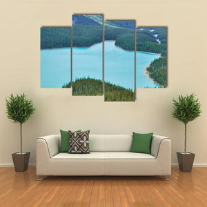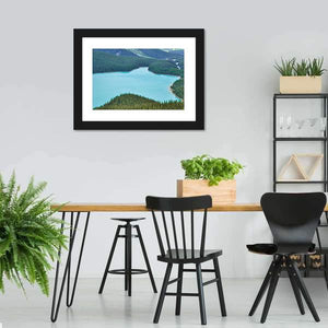 This beautiful canvas art features a tranquil view of Peyto Lake, showcasing its vibrant turquoise waters framed by dense evergreen forests and majestic mountains. It's an ideal piece for nature lovers seeking to bring a serene atmosphere to their space.
