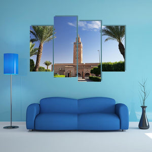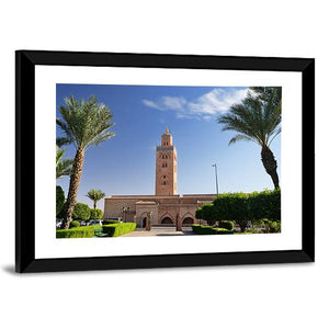 This photorealistic canvas captures the serene beauty of the Koutoubia Mosque, with its ornate minaret framed by lush palm trees and a bright blue sky. Its cultural essence makes it a perfect addition to diverse spaces.