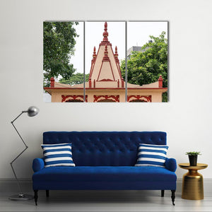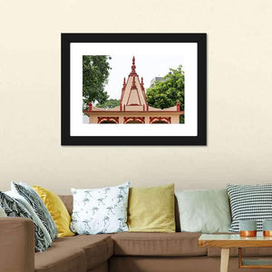 This canvas artwork captures the ornate dome and architectural details of the Dhakeshwari Temple in Bangladesh. With a serene palette of beige, red, and green, it creates a vibrant atmosphere. Ideal for adding a traditional touch to any space.