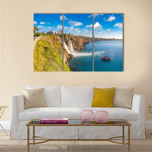Duden Waterfall with Sailing Boat Canvas Wall Art