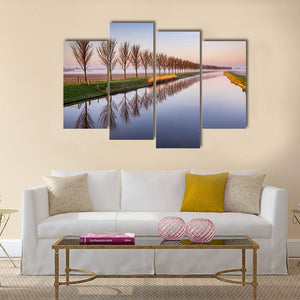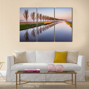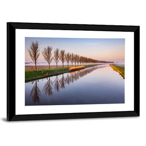 Early Morning Canal with Bare Trees Canvas Wall Art