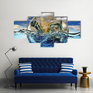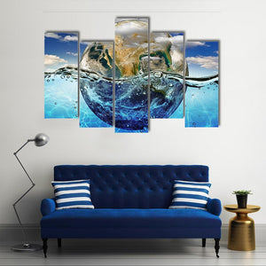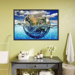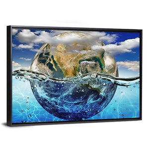 This captivating canvas features the Earth half-submerged in water, surrounded by clouds. Its surreal and thought-provoking composition invites you to contemplate our planet's beauty and fragility. Perfect for nature lovers and modern decor enthusiasts.