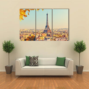 Capture the vibrant beauty of the Eiffel Tower with this stunning canvas art. The piece showcases a serene autumn scene, framed by golden leaves and the dynamic Paris skyline, perfect for cityscape lovers.