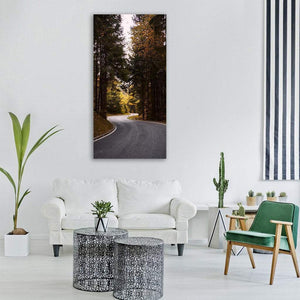 Winding Road Through Autumn Forest Vertical Canvas Wall Art