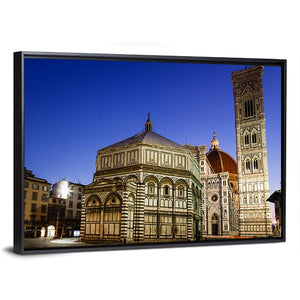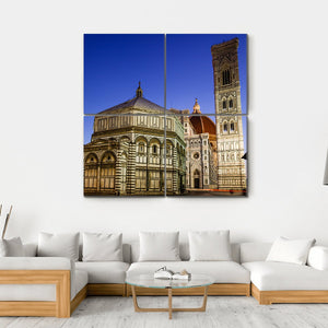Capture the historic beauty of Florence with this stunning canvas art featuring the majestic cathedral and bell tower. Its serene palette of blue, brown, and white highlights the ornate architectural details, evoking a sense of tranquility.