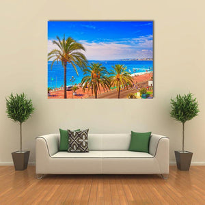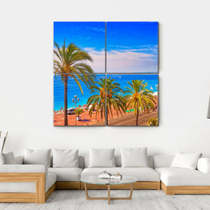 Bring the vibrant spirit of summer in France to your walls with this beautiful canvas art. Featuring a stunning beach scene adorned with tall palm trees, turquoise water, and a clear blue sky, it creates an inviting atmosphere reminiscent of tropical days. Perfect for brightening up any space.