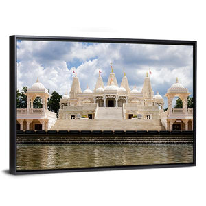 This canvas wall art features a serene white marble temple set against a peaceful sky. Its central composition and traditional style evoke a grand sense of tranquility, making it a fitting addition to any space.