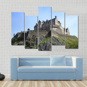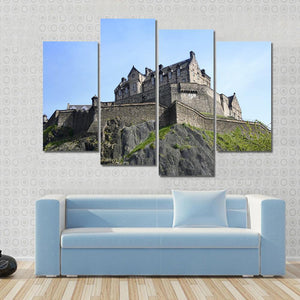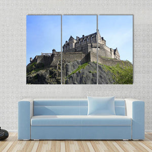 This canvas art captures the majestic Edinburgh Castle, perched atop a rocky outcrop under a clear blue sky. With its stone walls and tiled roofs, it brings a sense of historic grandeur to any space.