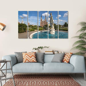 Capture the serene grandeur of La Plata Cathedral with this stunning canvas wall art. The vibrant blues and greens complement the majestic two spires and intricate fountain, making it a captivating focal point for your space.