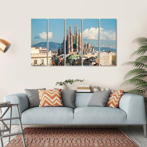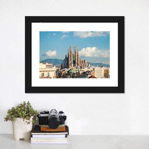 Celebrate the beauty of Barcelona with this canvas art featuring the majestic Sagrada Familia. With its distinctive spires rising against a sunny sky, this piece captures a historic moment in a stunning aerial perspective, perfect for any art lover.