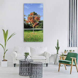 Autumn Tree with Fallen Leaves Vertical Canvas Wall Art